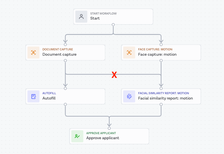Although the Workflow Builder allows you to arrange tasks that require applicant interaction (such as Document Capture or Face Capture tasks) in parallel, this has no practical effect since they will be presented to the applicant one at a time. Hence, there is no benefit in parallelising these tasks.
