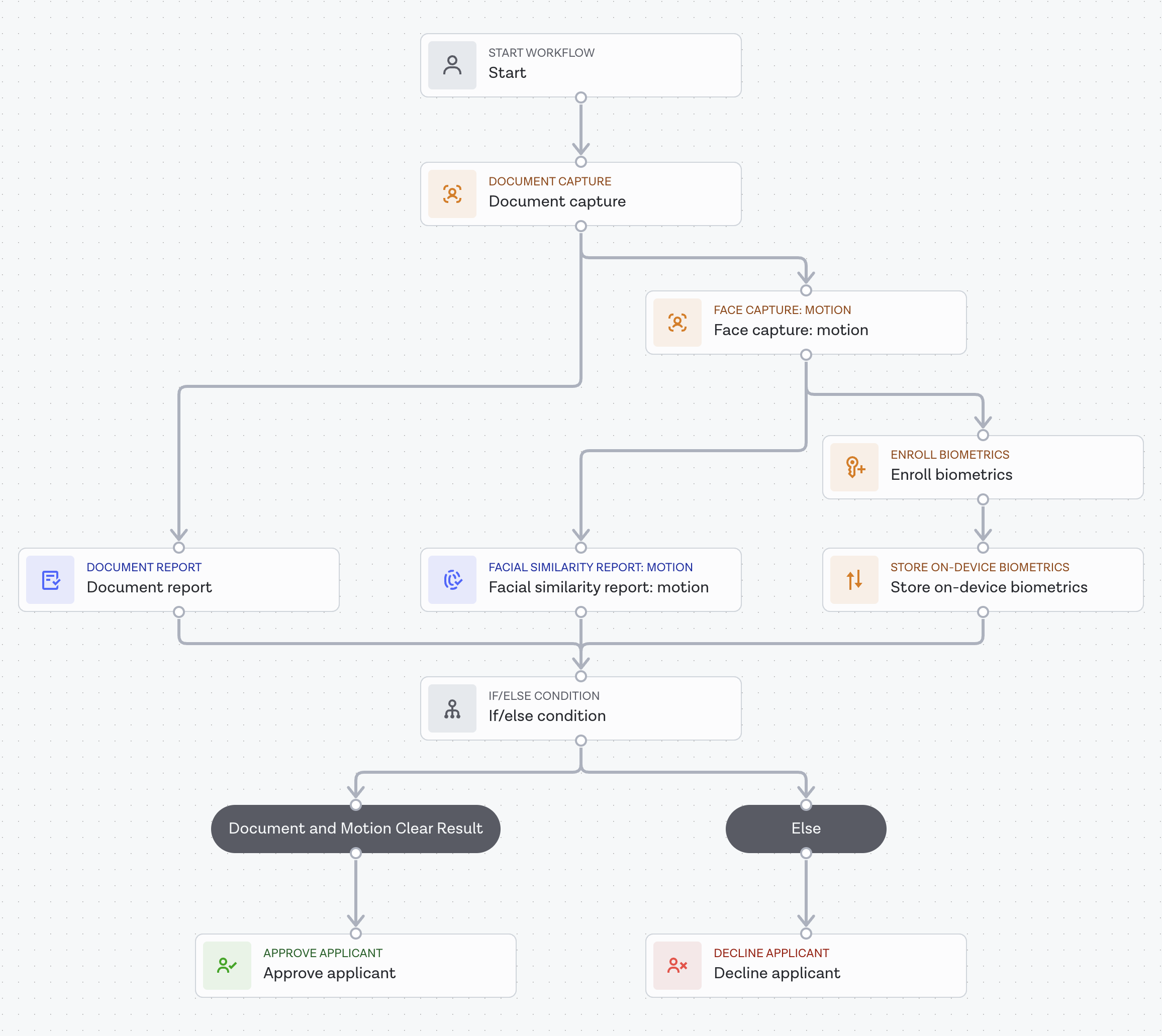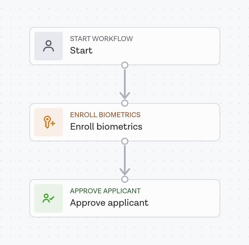 - an onboarding workflow that verifies the identity of a user through a document and biometrics check before passing the encrypted biometric data via a webhook to your infrastructure