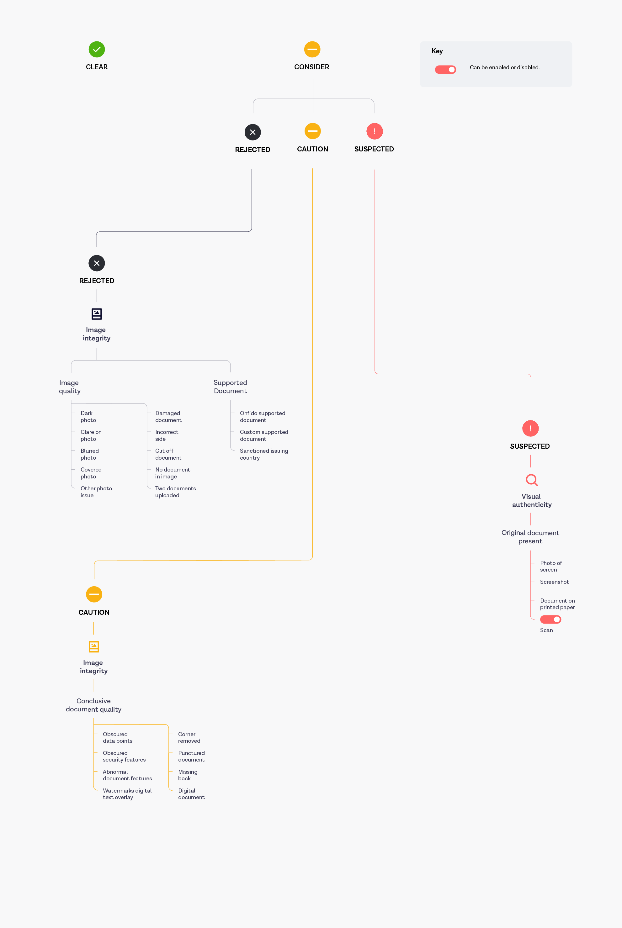 | Conclusive document quality | Measures the ability to make a fraud assessment based on the quality of the applicant's document. Applied by our expert manual review team when documents are unclassifiable as fraudulent or genuine. | |