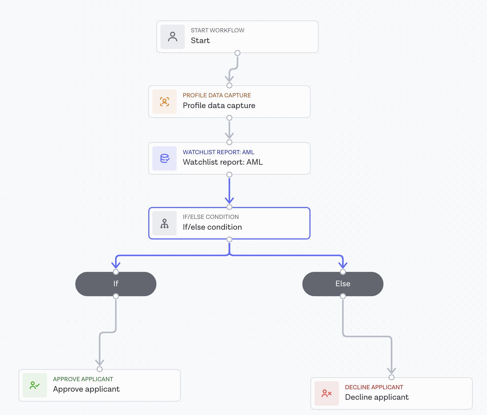 If you want to obtain the specific outputs from the Watchlist Report task via the Entrust Identity Verification API (for example, the overall report result or breakdown results), you can manage this by configuring the Workflow Output in the Studio Workflow Builder.