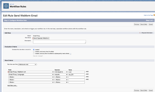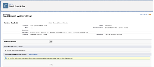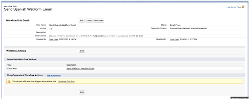 - Click on your newly created rule. In this example the "Send Spanish Webform Email".
