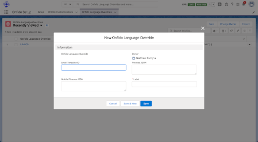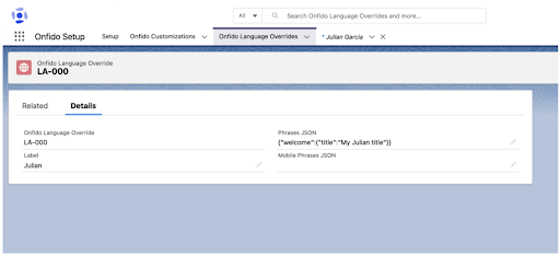 - To send an email on verifications with Onfido Language Override selected, enter the value as the label of your override record. In this example it would simply be Julian.